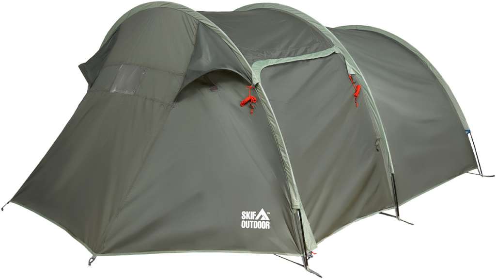Skif Outdoor Askania – комфортабельная кемпинговая палатка с вместительным тамбуром для багажа и снаряжения. Просторная конструкция может вместить до 4-х человек. Палатка выполнена из плотного полиэстера 190T с уровнем влагозащиты 4000 мм в. ст., который обеспечит полную изоляцию от ветра и дождя. Все швы проклеены. Входвыход и вентиляционные окна оснащены дополнительной защитой из москитной сетки. Материал опорной конструкции – крепкое стекловолокно. Пол выполнен из высококачественного материала Oxford 150D. Внутри модель оборудована кармашками для мелких предметов, а также креплением для фонарика под потолком. Для удобной транспортировки и хранения в комплекте идет чехол для палатки и два отдельных чехла для колышков, и каркасных труб. Skif Outdoor Askania предназначена для семейных путешествий или отдыха на природе.