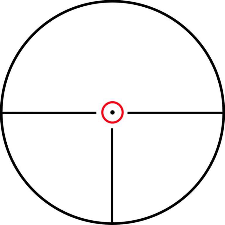 Прицельная марка Circle Dot (точка в круге) нанесена на одну из линз методом гравировки, что исключает возможность ее смещения в результате отдачи от стрельбы.