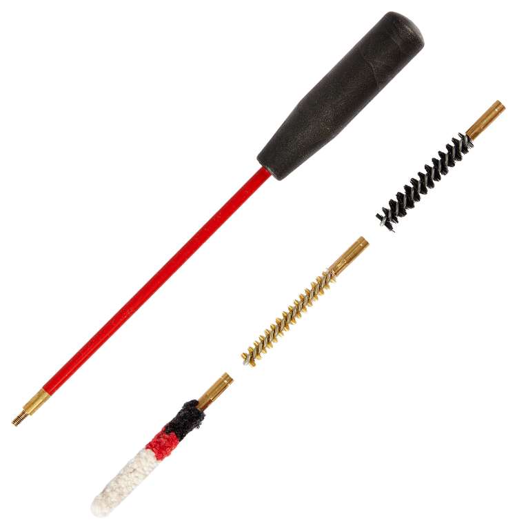Набор предназначен для чистки короткоствольного травматического оружия калибра 6 мм. Набор по уходу за оружием обеспечит качественную чистку и продлит срок службы вашего оружия. Набор содержит: шомпол латунный с ручкой из пластика, ерш латунный, ерш щетинный, ерш шерстяной. Длина шомпола: 135 мм.