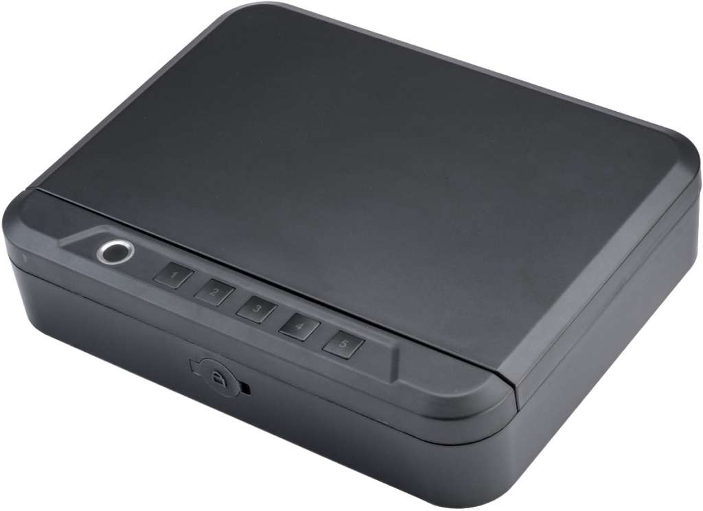Портативный сейф GTI Equipment предназначен для переноски пистолета, но также может быть использован и для ювелирных изделий. Интегрированный замок для ключей и точный датчик отпечатков пальцев обеспечивает безопасный доступ к содержимому сейфа. Способ разблокировки: отпечаток пальца, цифровой кодовый замок и ключ. Смарт-датчик может записывать до 20 отпечатков пальцев. Корпус изготовлен из ударопрочного полимера и ABS-пластика. Встроенный аккумулятор 3.7V 2500mAH в режиме ожидания работает около 3 месяцев от одной зарядки.
