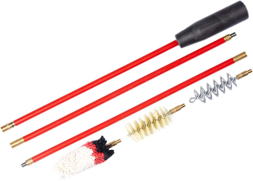 Набор для чистки гладкоствольного оружия 12-го калибра. В набор входит: стальной шомпол в пластиковой обплетке, ершик стальной спиральный, ерш щетинный, ерш шерстяной (пуховка).