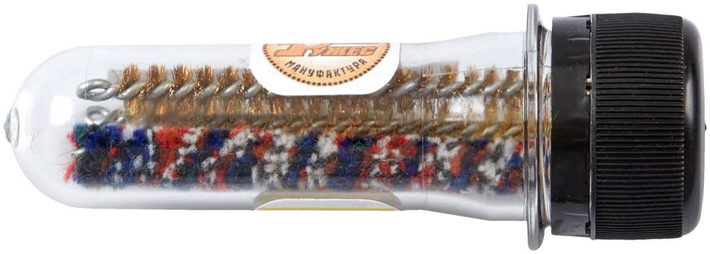 Набор ершиков Ружес в походном маслостойком тубусе. Набор состоит из двух ершей и пуховки различного диаметра, в зависимости от калибра оружия, для которого они предназначены.
