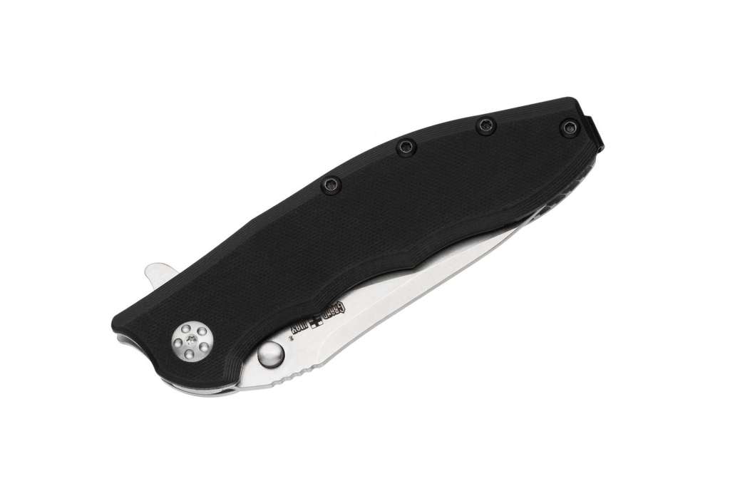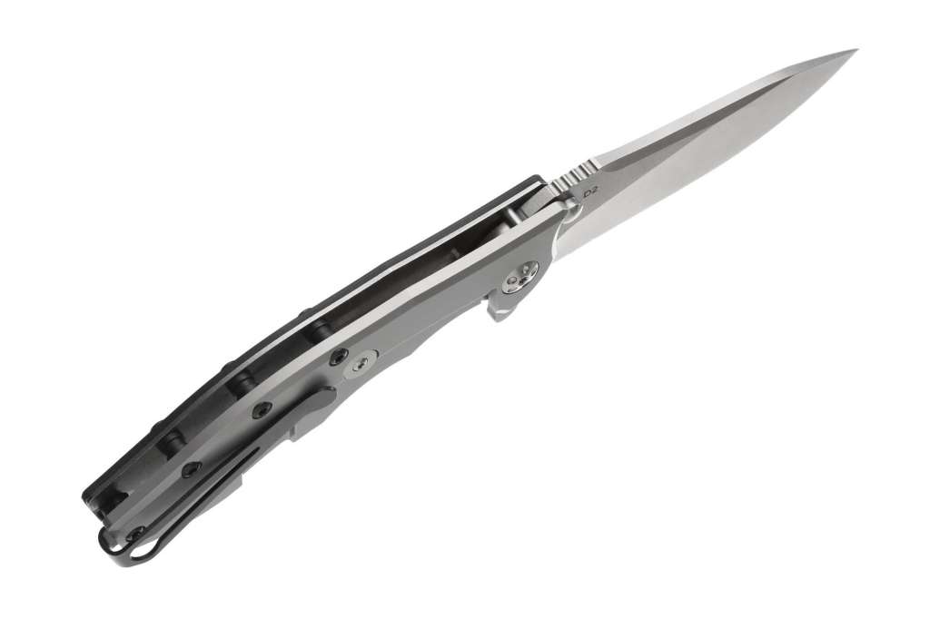 Клинок виготовлений з інструментальної сталі D2, що гарантує клинку міцність, відмінний різ і тривале утримання гостроти ріжучої кромки. Розкриття клинка – зачепом за плавник фліппера. Кліпса – сталева.