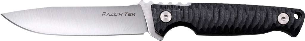 Cold Steel Razortek — новая серия ножей с фиксированным клинком, представленных в 2022 году. Серия состоит из трех ножей, которые отличаются между собой размерами и формами клинков и рукояток, однако выполненных из одинаковых материалов.Накладки на массивную рукоять выполнены из GFN с грубым рельефом. Выраженная подпальцевая выемка обеспечивает удобный захват ножа и препятствует сползания руки на режущую кромку. Нож Cold Steel Razortek комплектуется фирменными ножнами Secure-Ex и имеет отверстие для темляка на рукояти.
