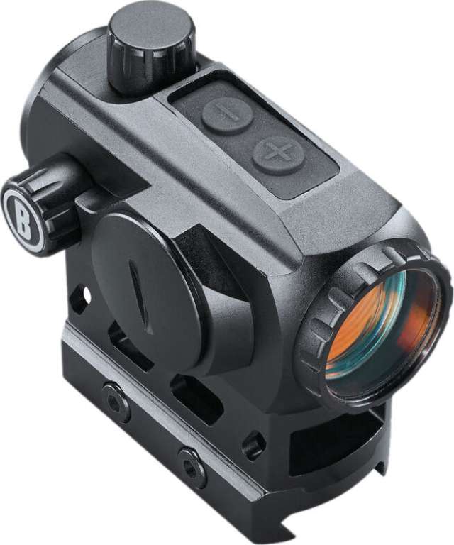 Коллиматорный прицел Bushnell TRS-125 – прицел закрытого типа с красной прицельной точкой 3МОА, предназначенный для развлекательной стрельбы, спорта и охоты. Все модели имеют уплотнительные кольца и заполнены сухим азотом для защиты от воды и запотевания. Они могут выдерживать полное погружение в воду и оставаться сухими изнутри. Ударопрочная конструкция защищает коллиматор от повреждений при ударах и падениях. Красная прицельная точка имеет 10 уровней регулировки яркости. Время работы – до 15000 часов при средних настройках яркости. Коллиматор оснащен таймером автовыключения, который может быть отключен при необходимости. Если таймер включен, он автоматически отключает питание после 12-ти часов бездействия. Модель поставляется в комплекте с креплением на Weaver/Picatinny и высокой базой (райзером). Фиксированный параллакс – от 91,44 м. ВН с райзером - 40 мм, без райзера - 22 мм.