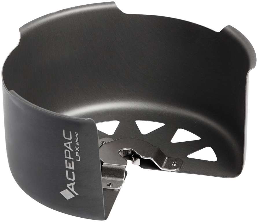 Ветрозащита Acepac LPX Shield предназначена для защиты походной газовой горелки от ветра. Благодаря продуманной конструкции и системе защелкивания, модель легко и быстро устанавливается, действенно защищает пламя от ветра, не препятствуя поступлению кислорода, а также не занимает много места во время переноски. Ветрозащита LPX Shield выполнена из анодированного алюминия, что делает её очень эффективной, но лёгкой. Диаметр LPX Shield составляет 16,3 см. Сбоку предусмотрено окно для контроля пламени.