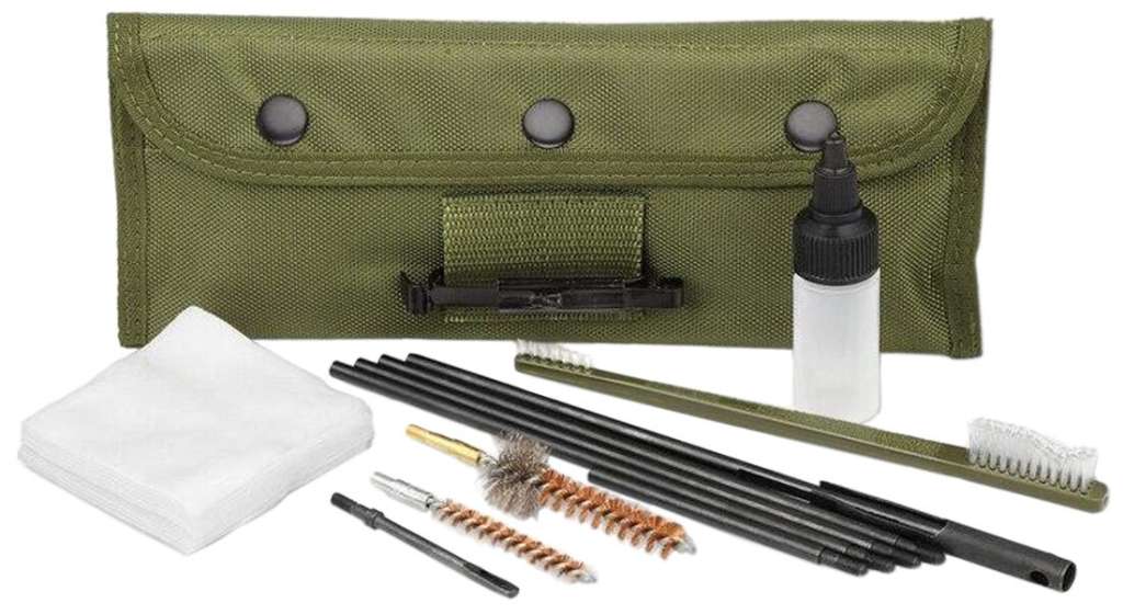 Компактный набор для чистки оружия Leapers UTG AR15. В комплект входит: пятисекционный шомпол с вишером (резьба 8/32 M), ершик латунный для чистки канала ствола, ершик для чистки патронника, двухсторонняя щетка с нейлоновой щетиной, салфетка, бутылочка для масла, нейлоновая сумка для хранения набора c петлей для ремня и клипсой для крепления на поясе или на снаряжении.
