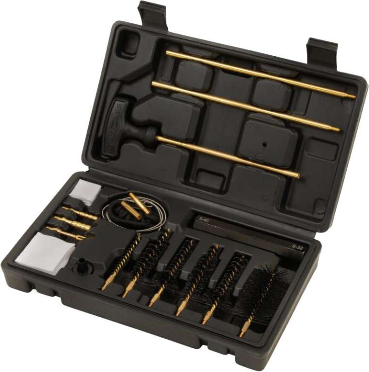 Набор инструментов Allen Krome Modern для обслуживания и чистки огнестрельного нарезного оружия в полевых условиях состоит из 17 предметов, которые можно использовать для винтовок и карабинов, и поставляется в прочном кейсе для удобной переноски. Все инструменты изготовлены из высококачественных материалов. Набор включает в себя: ершик для чистки затворной рамы, ершики для чистки ствола для кал. 22/.223 и .308, латунные вишеры-иглы и вишер-петлю, ершик для чистки ствольной коробки , трехсекционный латунный шомпол с вращающейся эргономичной алюминиевой ручкой, ершик для чистки газоотводной трубки, гибкий шомпол, квадратные патчи.