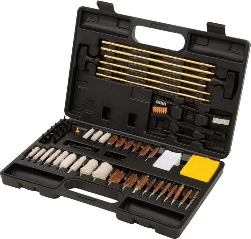 Универсальный набор инструментов Allen Krome Stronghold для обслуживания и чистки огнестрельного оружия в полевых условиях состоит из 60 предметов, которые можно использовать для пистолетов, винтовок, гладкоствольного оружия, и поставляется в прочном кейсе для удобной переноски. Все инструменты изготовлены из высококачественных материалов. Набор включает в себя: 16 бронзовые ершей и пуховок для кал. 410, 20 и 12, .22, .243, .270, .30, 6,5 мм, 7 мм, .38, .40, .44 и дополнительные ершики для калибра .338, .45 и .50; 11 нейлоновых вишеров-игл для кал. 6,5 мм, 7 мм, .22, .243, .25, .270, .30, .338, .38, .40, .45 и вишеры-петли для кал. 22, .30, .38; адаптеры для насадок, два стандартных латунных чистящих шомпола с поворотными ручками из 3 частей для кал. 5,2 мм и 6,5 мм, нейлоновые защитные дульные насадки для каждого шомпола, 2 щетки и выколотку, патчи и салфетки для чистки оружия.