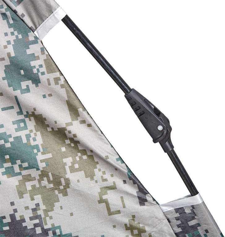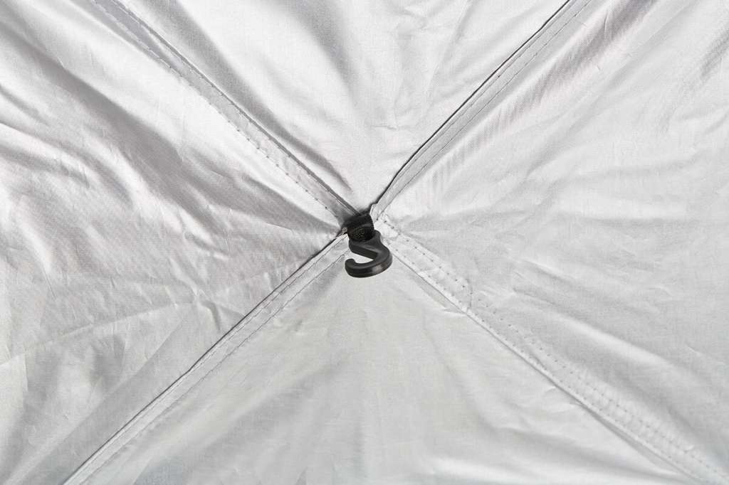 Каркас палатки представляет собой раскладную конструкцию из 4 дуг, состоящих из трех сегментов. Все, что нужно — развернуть палатку, выровнять дуги, приподняв палатку вверх, поставить и прижать сверху по центру с небольшим усилием.