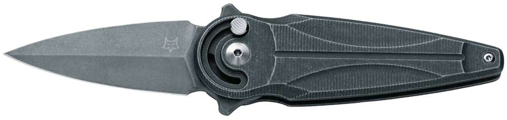Нож Saturn можно назвать воистину достойным расширением ассортимента ножей Fox с инновационным замком FSOS, который ранее получил модельный ряд Fox Radius. Система открытия/фиксации клинка FSOS (Finger Safe Opening System – Безопасная для Пальцев Система Открытия ножа), придуманная Денисом Симонутти и впервые представленная на выставке Blade Show 2019 в Атланте. У основания рукояти расположено длинное закругленное отверстие, в котором по оси хода клинка перемещается установленная на обухе кнопка-шпенек. Закрытие происходит в обратном порядке, нажатием на кнопку и движением пальца по оси вниз. Клинок формы Spear Point изготовлен из высокопрочной нержавеющей стали N690Co твердостью 59-61 HRC с покрытием Stonewash. Накладки выполнены из черного анодированного алюминия с фигурными узорами для комфортного хвата.