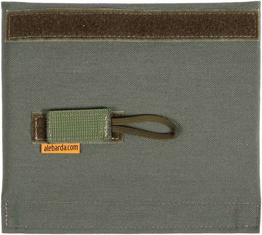 Чехол Алебарда для глушителя изготовлен с использованием современных материалов типа Nomex и Cordura, что предотвращает распространение горячего воздуха от нагретого саундмодератора. Конструкция предусматривает крепление антимиражной ленты. В чехле использованы ограничители, которые предупреждают его сползание как вперед, так и назад по направлению к выстрелу.