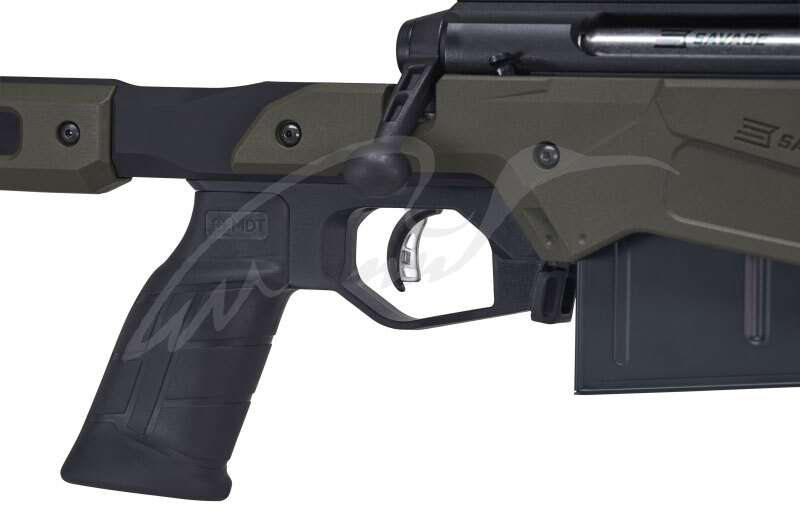 - Пистолетная рукоятка MDT. - УСМ AccuTrigger с регулировкой усилия спуска в диапазоне от 1134г до 2722г.