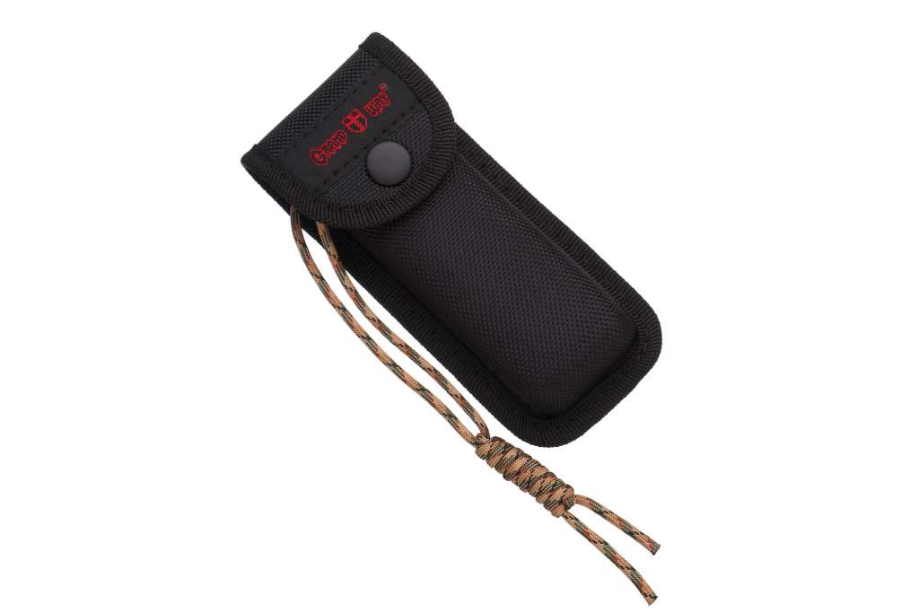 Ніж поставляється у комплекті з міцним чохлом із кордури. Наявність кліпси також забезпечує зручне постійне носіння ножа на кишені.