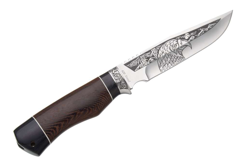 Клинок виготовлений із нержавіючої сталі марки 420. Цей сплав має багату історію та є доволі поширеним ножовим матеріалом. Однією з головних переваг цієї сталі є її виключно висока корозійна стійкість. Тому, наприклад, з нержавійки марки 420 часто роблять ножі для дайверів. Для мисливського ножа, що часто перебуває у умовах з підвищеною вологістю та постійно контактує з біологічними рідинами, такі якості також дуже корисні.