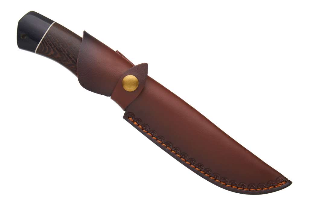 У комплекті з ножем ідуть міцні шкіряні піхви. Широка шльовка дозволяє підвісити їх навіть на дуже широкий ремінь брюк. Ніж у піхвах додатково фіксується застібкою на кнопці.