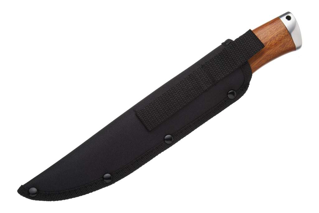 Деревина у якості матеріалу рукояті є не тільки красивим, але й приємним на дотик матеріалом. Воно не остигає на морозі, не розжарюється в спеку, має приємний для ока багатий колір та малюнок і чудово гармонує з декорованим прибором ножа.