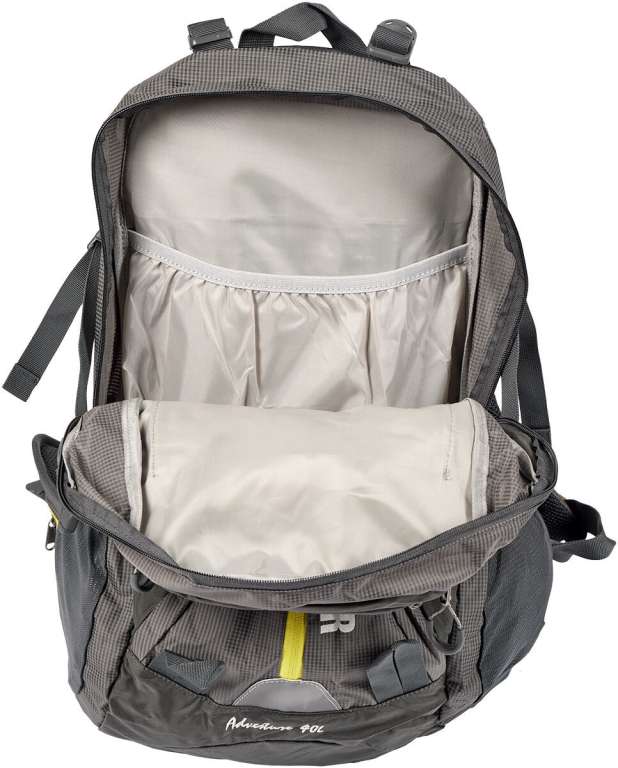 Модель оборудована компрессионными ремнями по бокам и плечевыми шлейками с мягкими вставками. Рюкзак Adventure имеет отверстие для вывода трубки гидратационной системы.