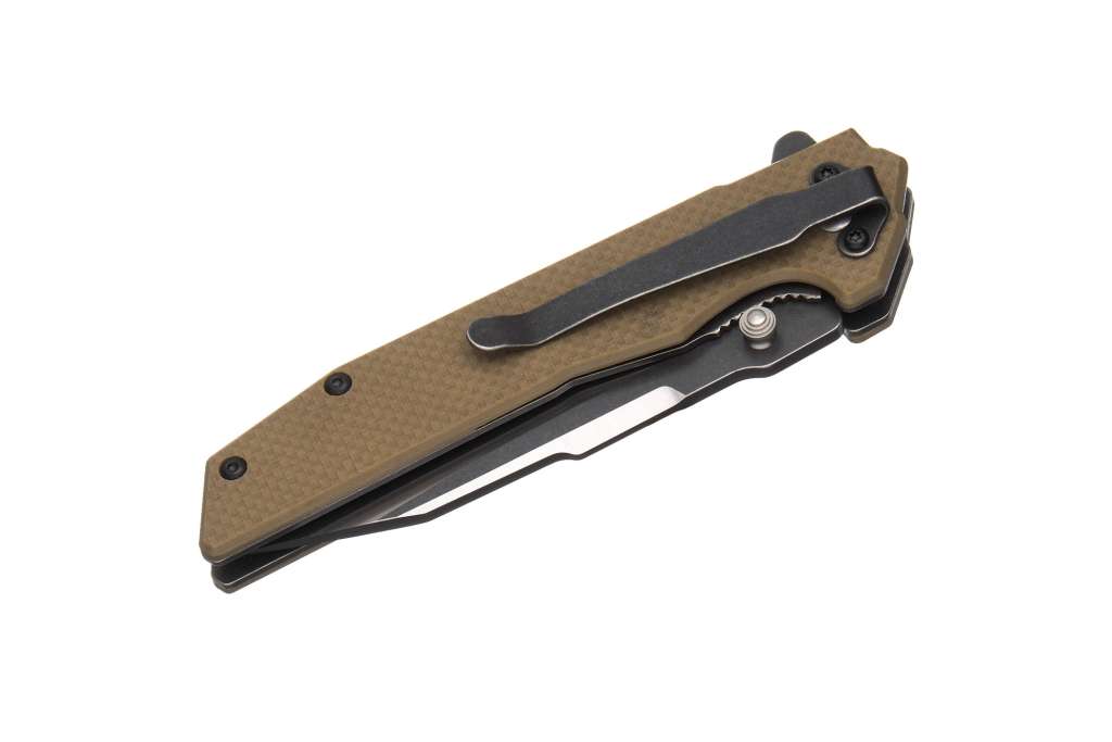 Сталева кліпса, розташована з правого боку рукояті, дозволяє надійно закріпити ніж на зрізі кишені.