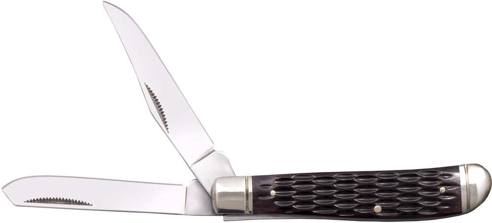 Складной нож Cold Steel Mini Trapper — это мини версия Cold Steel Trapper. Он изготовлен по традиционному образцу ножа Jack Knife с двумя полированными клинками, которые извлекаются с помощью ногтевой выемки из одного конца рукояти. Один клинок профиля Clip Point для грубой работы и второй клинок Spey Point для более деликатного реза. Клинки изготовлены из высокоуглеродистой нержавеющей стали 8Cr13MoV. Накладки на рукояти изготовлены из натуральной кости и украшены полированными металлическими больстером и навершием. Фиксируется в открытом положении механизмом фиксации Slip Joint. Представлены в трех цветовых вариантах: синий, желтый и коричневый с фактурными накладками. Cold Steel Mini Trapper – это отличный карманный нож, который идеально подходит для повседневного использования в городской среде.