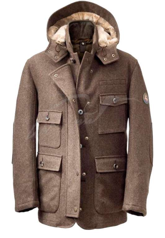 Habsburg Ernst mit Nutria изготовлена из шерсти первоклассной обработки в сочетании шерсти ондатры в капюшоне. Удобство и практичность в куртке Ernst mit Nutria продумана до мелочей, четыре накладных кармана с клапаном, два внутренних прорезных кармана на молнии и большой карман для дичи на задней части. Капюшон съемный с утяжкой объема и крепиться к куртке с помощью кнопок, рукава усилены в области локтей для защиты о протирания. Внутри есть крепления для фиксации подстежки.