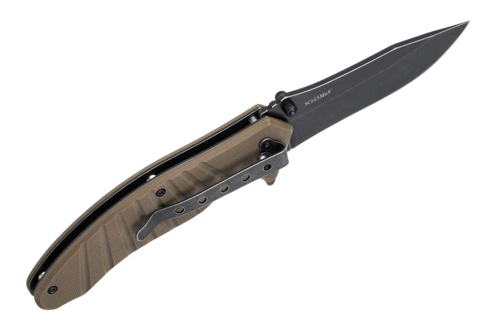 Клинок форми drop point з увігнутими спусками забезпечений всім набором елементів, які повинні бути у будь-якого поважаючого себе сучасного складного ножа. Серед них можна перерахувати: