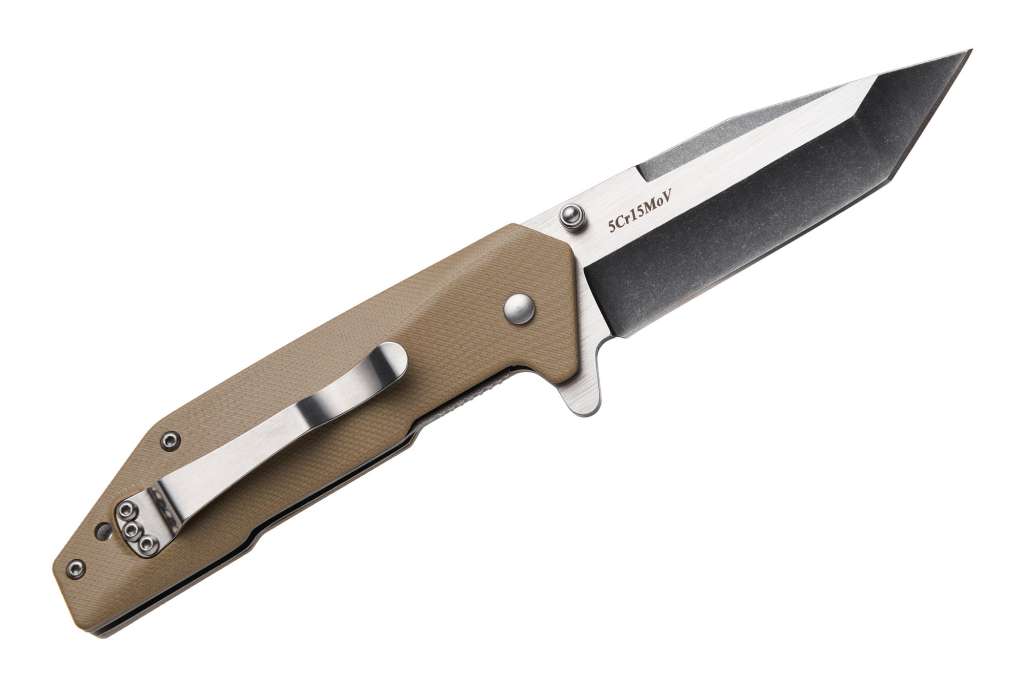 Рукоять кольору coyote (однотонний колір коричневого відтінку, що нагадує забарвлення лугового вовка – койота, який буквально зливається з місцевістю, що вигоріла під палючим південним сонцем) і клинок типу американський танто виглядають дійсно «тактикульно», добавляючи цьому ножу кілька додаткових балів у категорії «за стиль та зовнішній вигляд».