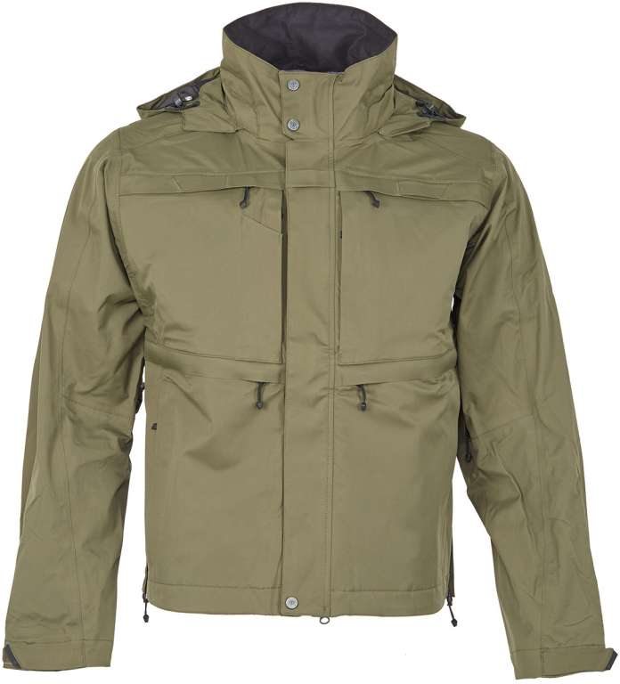 Куртка оборудована регулируемым, съемным капюшоном с козырьком, который в случае необходимости можно снять и спрятать в задний карман. Куртка Tactix Jacket Shell имеет регулируемые манжеты на липучке и вентиляционные отверстия на молниях под руками, что способствует хорошему воздухообмену.