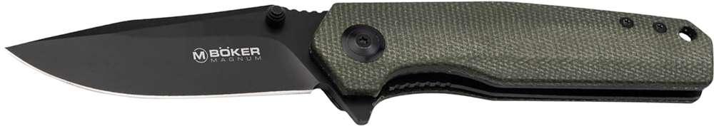 Boker Magnum Field Flipper создавался как EDC-нож на все случаи жизни. Прежде всего модель Field Flipper привлекает внимание своим сдержанным дизайном. Клинок профиля Clip Point изготовлен из стали марки 440A, которая обладает повышенной стойкостью к коррозии. Сверху нанесено черное защитное покрытие. Легкое открытие гарантирует система шарикоподшипников с помощью шпенька или флиппера. Фиксируется в открытом положении с помощью замка Liner Lock. Накладки на рукояти изготовлены из зеленой микарты. Материал приятный на ощупь и комфортно лежит в руке. На торце размещено отверстие для темляка, а также карманная клипса в положении tip-up.