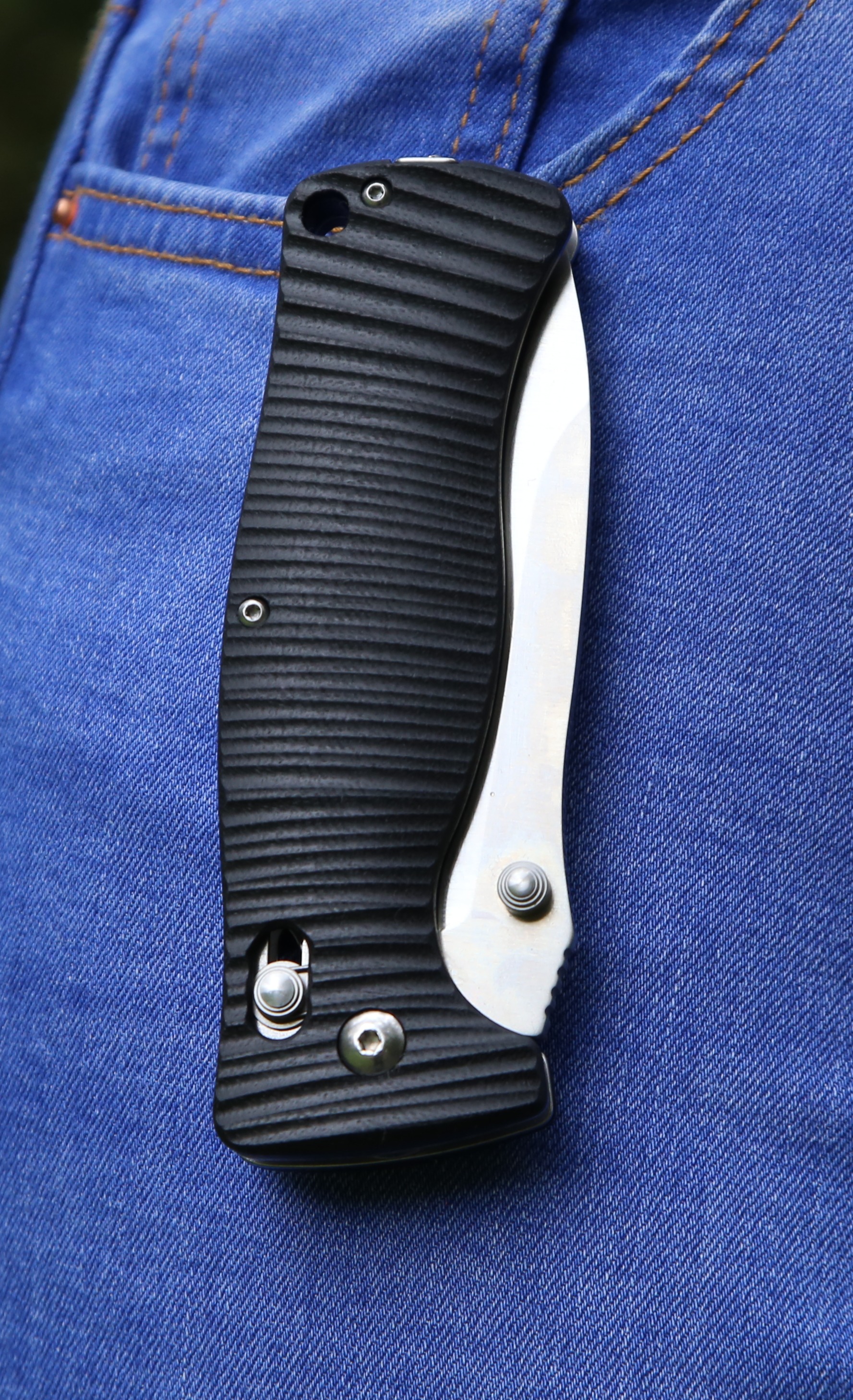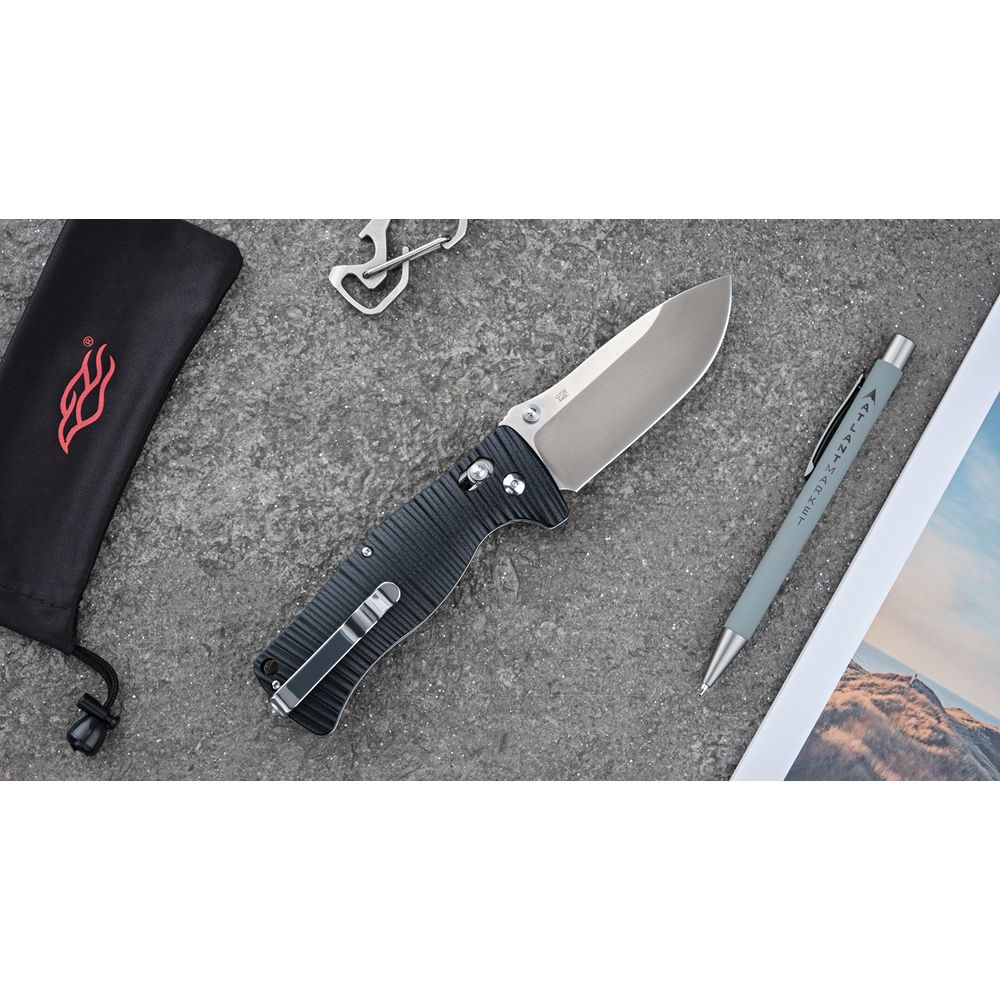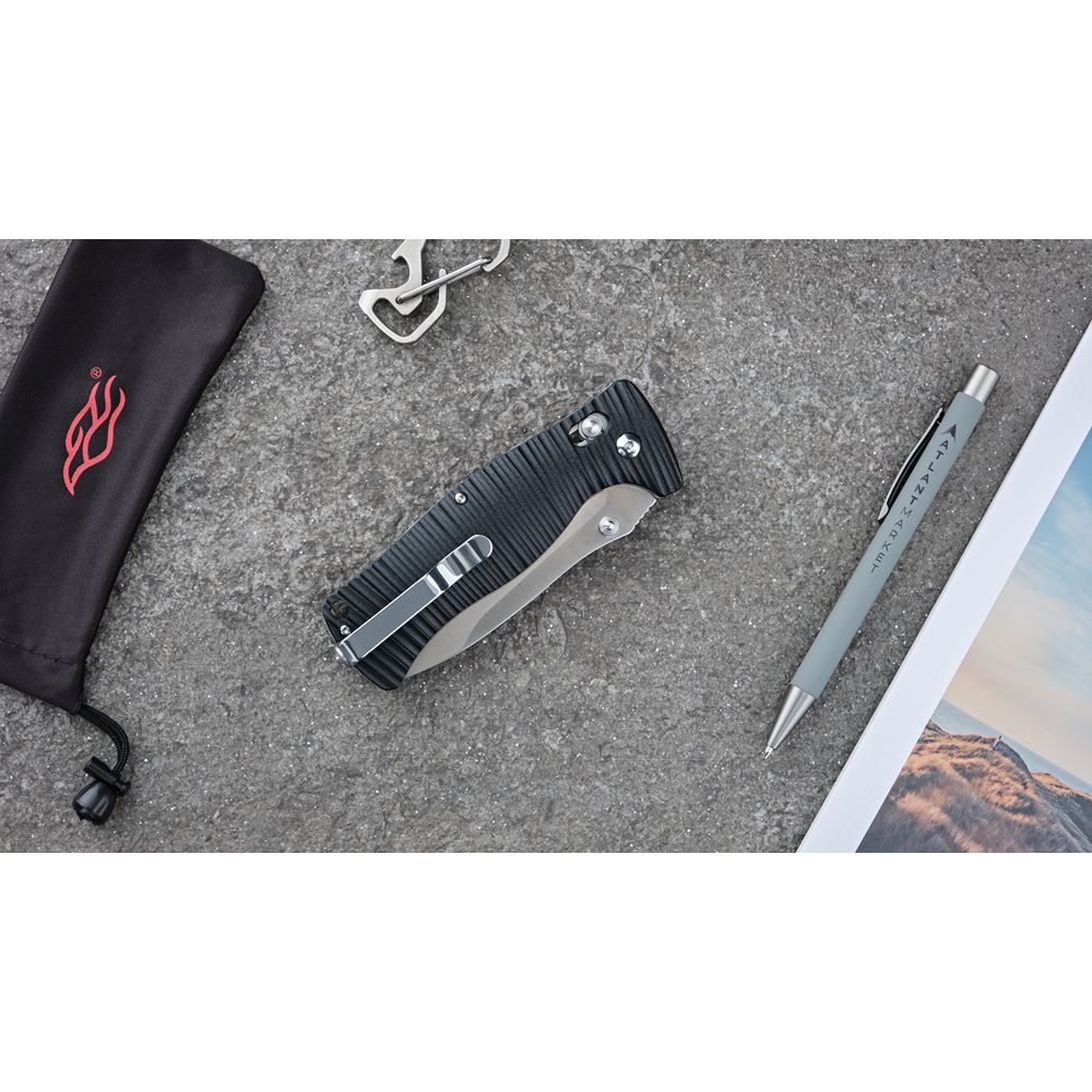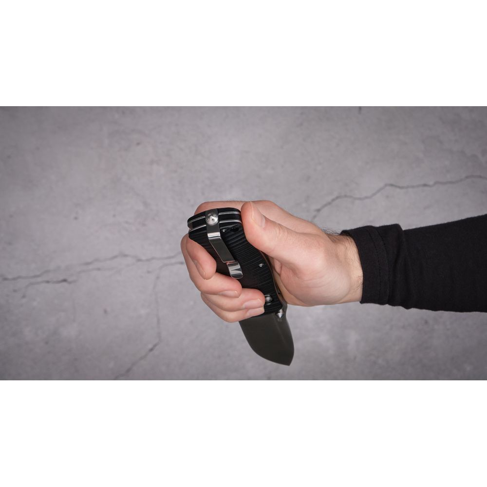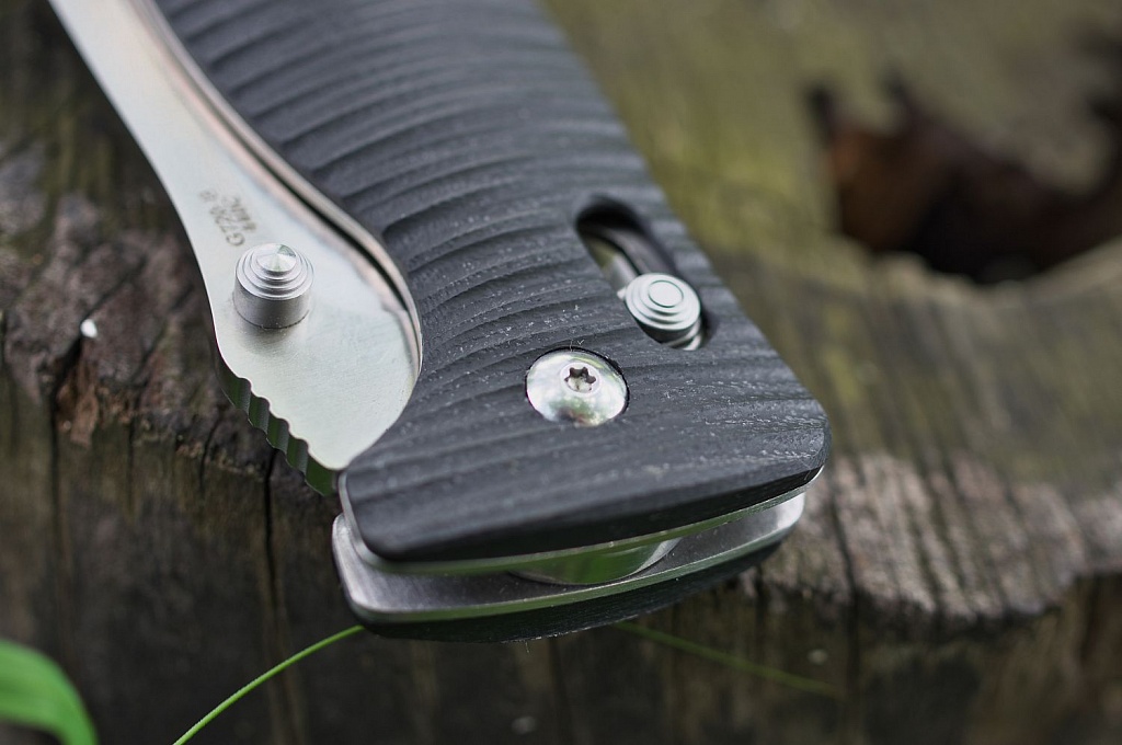 Для накладок на рукоятку ножа виробники використовували сучасний вид пластику високої міцності під назвою G10. По суті, він являє собою композитний матеріал з епоксидних смол і склотканини. Цей матеріал володіє високою міцністю, добре витримує удари, протистоїть волозі і довгий час зберігає яскравий колір. Рукоятка ножа Ganzo G720 нерівна. Така форма одночасно грає роль елемента дизайну і сприяє надійному утриманню.