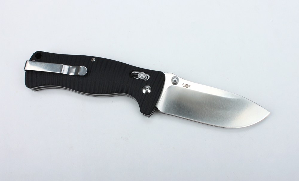 Складаний ніж Ganzo G720 в складеному стані має довжину всього 12 см, тому легко поміститься в кишені. Клинок цього ножа отримав заточку прямого типу. Його довжина становить 9 см, товщина з боку обуха — 0,4 див. В якості матеріалу для ножа виробники вибрали стійкий до корозії хромистую сталь марки 440С. Ножі з такої сталі легко заточуються і довго залишаються гострими. Твердість клинка в моделі ножа Ganzo G720 оцінюється в межах +- 58HRC.