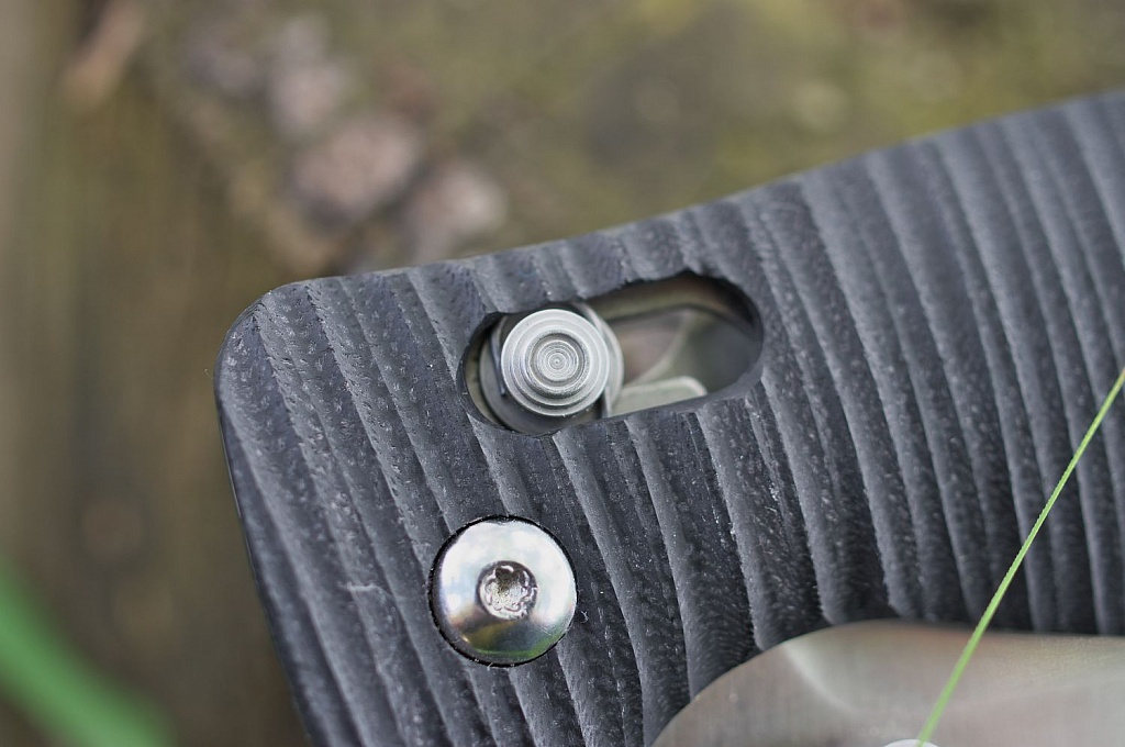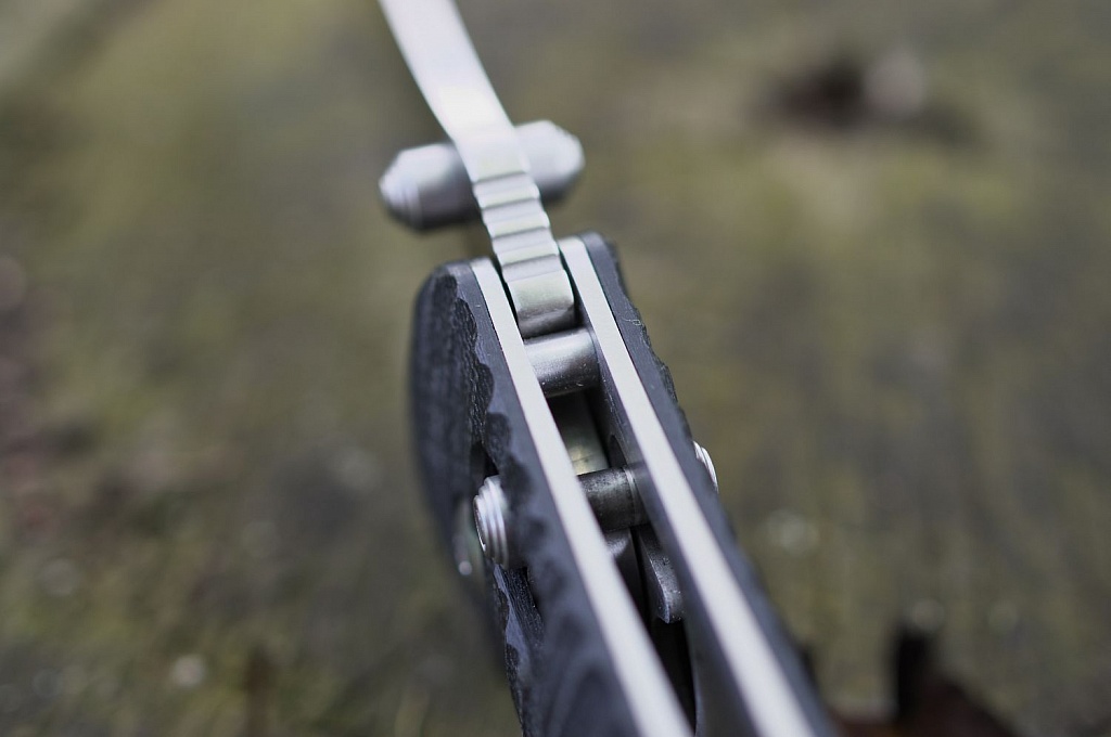 В даній моделі встановлений замок Axis. Це замок штифтового типу, в якому клинок фіксується за допомогою підпружиненого металевого штифта. Користуватися замком Axis однаково зручно будь-якою рукою. А його перевага в тому, що ніж з замком Axis не може спрацювати випадковим чином. Єдина умова для справності замку — необхідно підтримувати його в чистоті.