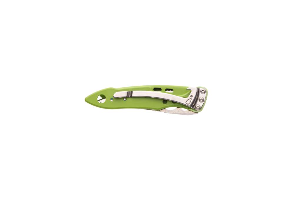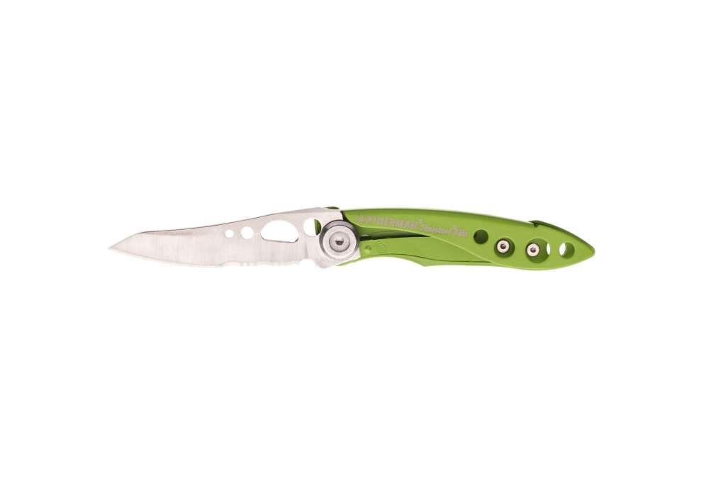 Клинок Skeletool витягується за допомогою передбачених отворів під великий палець і фіксується замком Liner Lock, дизайн якого характерний для мультитулов Leatherman.