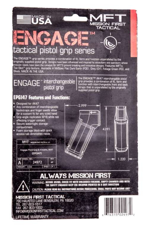 Поєднання зручності та функціональності, що не має собі рівних в оригінальному пістолетному руків'ї AK47. Кут руків'я такий самий, як у M16. Взаємозамінні текстуровані виступи для пальців (3) та накладки на задню частину руків'я (3) забезпечують надійне захоплення мокрими руками або руками в рукавичках і дозволяють налаштувати посадку. ● Призначене для AK47 ● Повнорозмірне пістолетне руків'я замінює більш тонке оригінальне руків'я для повного захоплення ● Кут захвату повторює M16, але не впливає на контакт зі спусковим гачком ● Надійний водонепроникний відсік для зберігання ● Матеріл виробу- полімер.
