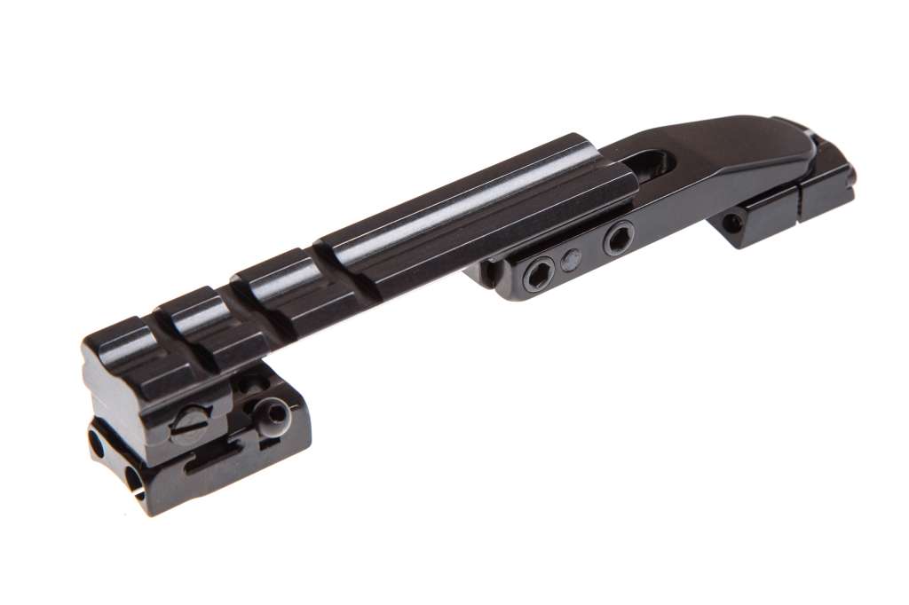 Поворотный кронштейн EAW - быстросъемный моноблочный кронштейн c шарниром из стали на планку Weaver. Используется профессиональными охотниками и стрелками для быстрой и эффективной смены прицельного приспособления на выбранном оружии. Такой тип кронштейна даёт возможность стрелку быстро сменить прицельное приспособление, не теряя при этом точность стрельбы. Исходя из ситуации, в которой находится стрелок, быстрая смена прицела может значительно увеличить эффективность стрельбы и улучшить её результативность. Поворотные кронштейны EAW предлагают многочисленные возможности регулировки заднего и переднего быков для свободной от напряжений установки оптического прицела и гарантируемого подобной установкой сохранения точки попадания – также при поочередном использовании нескольких оптических прицелов. Особенностью является плавная регулировка по длине (наличие патента на данную конструкцию) в переднем быке, которая способна компенсировать допуски в расстоянии от переднего основания до замка. Поворотный моноблок-флекс с верхним основанием WEAVER для установки прицелов с интегрированным кронштейном под Weaver, типа Bushnell Holosite, Hakko BED-40/35, BURRIS FastFire, BURRIS SpeadDot, DOCTER, а так же ночных прицелов с креплением на эту посадку. Также возможна установка любого другого прицела при помощи соответствующих колец.