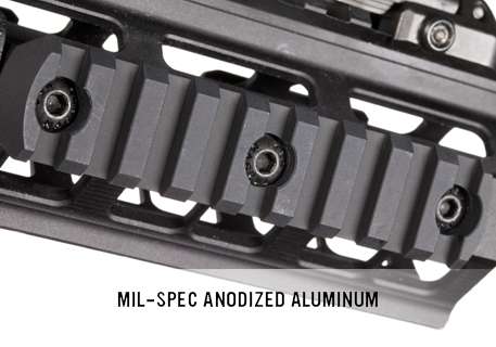 M-LOK ™ ALUMINUM RAIL, 9 SLOTS – планка стандарту 1913 Picatinny. Виготовлена з алюмінію, здатна витримувати серйозні ударні навантаження. Призначена для установки різних аксесуарів (рукояті перенесення вогню, кріплення для ліхтарів , лазерні цілевказники і т.п.). Підходить для використання з цівками системи M-LOK.