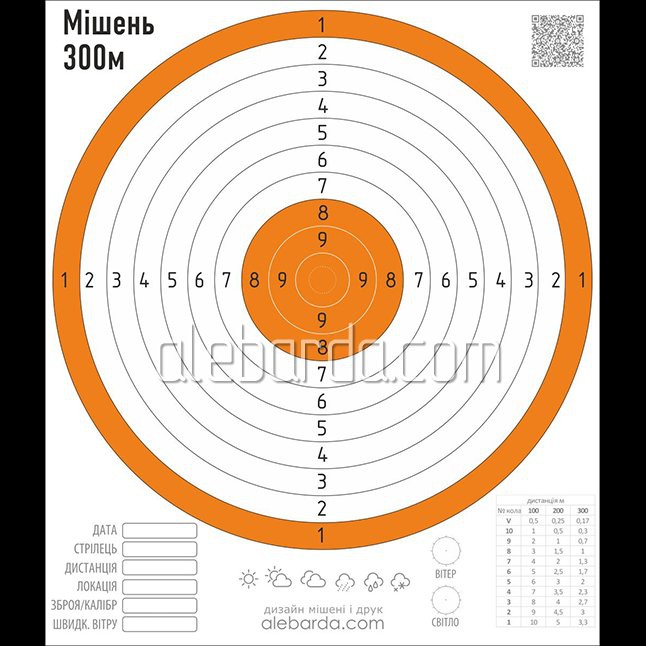 Мишень разработана специально для высокоточной стрельбы на 300 метров. Но при этом она удобна будет в тренировках на любых дистанциях от 50-100 метров для пневматического оружия до 500 метров для высокоточного нарезного. Эта мишень доступна в цветах: синий, оранжевый и серый.