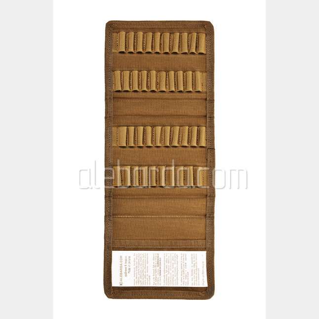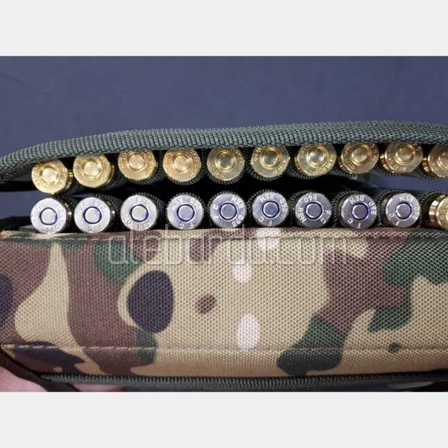 Патронташ призначений для перенесення і зберігання 40 патронів в калібрі .308; 6.5 Creedmoor; 243Win. Виготовлений з високоміцної тканини Cordura 1000D. Кришка фіксується на фастексах, є кишеня для розміщення заміток, наприклад, з навішеннями або поправками.