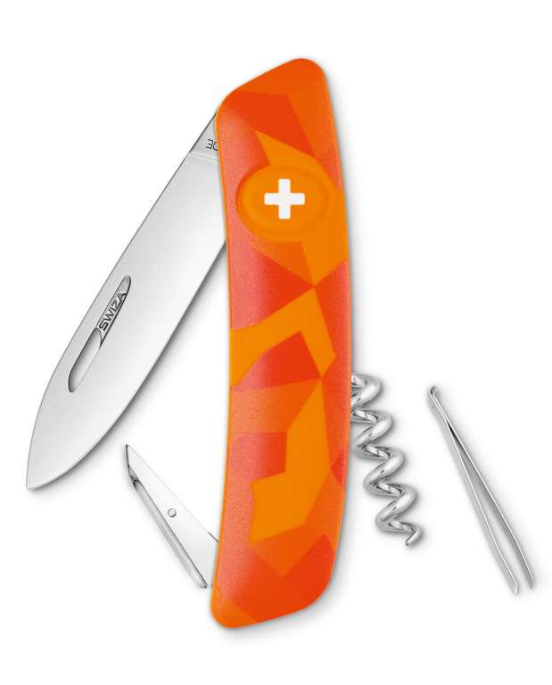 Модель Swiza C01 поставляється з наступними 6 інструментами: * ідеально відполірований міцний нержавіючий клинок довжиною 75 мм (440C 57 HRC); * штопор розміру «Сомельє» із загартованої нержавіючої сталі на 5 витків; * шило зі швейним вушком дирокол, що дозволяють проткнути шкіру і багато інших міцних матеріалів; * пінцет зі скошеними кінцями для високої точності при видаленні колючок; * замок Safety Lock, що фіксує клинок у відкритому положенні і не дає йому скластися на пальці. Складаний ніж SWIZA - це сучасне прочитання швейцарської класики. Бренд SWIZA передбачає зручність і практичність в повсякденному використанні в поєднанні з автентичною швейцарською стилістикою і орієнтований на людей з динамічним способом життя. SWIZA - зручний, стильний і простий у використанні швейцарський ніж, адже він поєднує в собі тільки ті функції, які можуть знадобитися щодня. Нічого зайвого: «A great challenge: concentrating on the basics and eliminating superfluities» «Відмінне завдання: зосередитися на засадах і усунути надлишкові функції» Ножі виготовлені з нержавіючої сталі марки 440C, загартованої до 57 одиниць за шкалою Роквелла. Такі показники є оптимальними для щоденного використання і легкої заточки. Складні багатофункціональні ножі Swiza мають ряд унікальних особливостей. Ергономічна вигнута форма та м'яка нековзна рукоять з матового прогумованого полімеру Soft touch роблять її більш зручною для зберігання і роботи. Такі ножі дійсно виділяються серед інших швейцарських ножів. Ножі Swiza безпечні. Замок Safety Lock, вбудований в швейцарський хрест на рукояті, активується натисканням на заховану в ньому кнопку. Надійно зафіксований лайнер не дасть клинку скластися вам на пальці. Розкрийте клинок і насолоджуйтеся чудовим безпечним різом. Для того, щоб закрити ніж, необхідно затиснути хрест і плавно заховати клинок в рукоять. На відміну від інших ножів, вам необхідно просто затиснути кнопку, а не відсувати сам лайнер всередині рукояті. Інструменти Swiza мають зручні прорізи, що дозволяють з легкістю діставати їх з рукояті як правші, так і лівшам. Крім того, вони дозволяють зберегти нігті, що так важливо для представниць прекрасної статі. Ножі Swiza невибагливі в догляді: ви можете мити їх як під проточною водою, так і в посудомийній машині в воді до 80 градусів, однак постарайтеся помістити ніж в машині окремо від решти забрудненого посуду. Обов'язково протріть насухо кожен інструмент після миття. Окремим пунктом варто відзначити дизайн, адже різноманіття кольорів та візерунків рукояті задовольнить вимоги як прихильника класики, так і любителя яскравих незвичайних аксесуарів. Універсальний чорний або класичний червоний? Життєрадісний оранжевий або безтурботний блакитний? А, може, бездоганний білий або камуфляж? Обирати тільки вам, адже це ще не все колірні рішення, в яких доступні ножі Swiza. Довідка про компанію. Компанія Helvetica Brands S.A. веде свою історію з 1904 року, коли Луї Шваб заснував виробництво високоточних механічних годинників в мальовничому районі сучасного швейцарського кантону Юра. Змінювалися покоління, йшли роки, а чудова швейцарська якість тримала марку. У 2015 році компанія прийняла рішення йти в ногу з часом і створила новий продукт в своєму портфелі - ніж Swiza, який вже в 2016 удостоївся престижної нагороди Red Dot Awards. Дана нагорода вручається за особливі досягнення в дизайні споживчих товарів. Гаранті