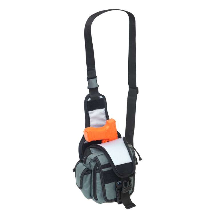 DANAPER VEGA представляет собой сумку в формате слингера и может носится как на плече, так и через плечо. Фасад сумки оборудован клапаном на фастексе, прикрывающем отделение органайзера. Конструкция органайзера позволяет удобно, а главное, рационально разместить вещи владельца и не позволяет при полном открытии молнии отвалится наружной стороне кармана. Кроме этого, сумка имеет вместительное отделение, располагающееся за органайзером с плоским карманом для планшета или документов. На боковой стороне сумки размещен карман закрывающийся клапаном для газового баллончика, электрошокера или утилитарных вещей владельца. С противоположной стороны сумка оборудована стропами MOLLE, что позволит довесить дополнительный подсумок или элемент снаряжения. По обеим сторонам сумки располагаются полукольца, а на плечевом ремне карабин. Это позволит удобно носить ее как через правое, так и через левое плече.Сумка DANAPER VEGA оборудована системой скрытого ношения и быстрого доступа к оружию. Отделение для оружие располагается под всей задней стенкой сумки, что позволяет размещать как пистолеты равные по габаритам ПМ, так и более крупные образцы, такие как Форт, АПС, Glok 17/19, S&W P40 и т.д. Задняя стенка отделения для оружия оборудована велкро панелью (липучкой) к которой крепится кобура DANAPER HOLSTER T. Такая компановка оружейного отделения позволяет более гибко настроить сумку под определенное оружие, задать нужную глубину размещения, удобный угол расположения пистолета. Обе стенки оружейного отделения имеют демпфирование и полимерный каркас, что, помимо маскирующего эффекта, делает ношения пистолета комфортным. На дне отделения располагается полукольцо крепления страховочного шнура для пистолета. Сумка пошита из высококачественного полиамидного материала Cordura. При изготовлении сумки применены высококачественные молнии YKK. Вся пластиковая фурнитура изготовлена из POM (полиацеталь) брендом YKK.
