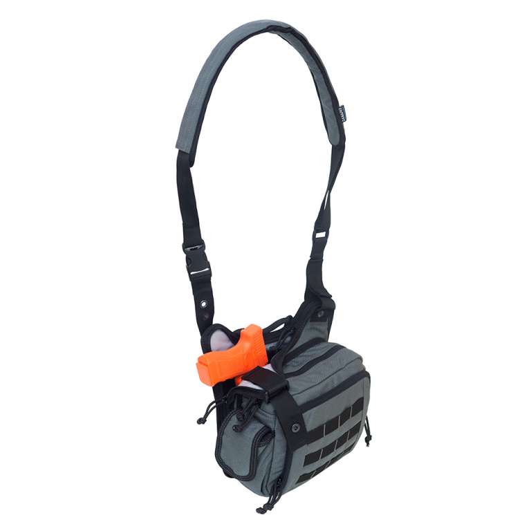 Многофункциональная сумка DANAPER Alphyn является представителем серии универсальных сумок Alphyn, которые могут являться повседневными спутниками в городе или быть элементом тактического снаряжения. Сумка имеет наружный карман органайзер на молнии. Основное отделение демпфировано и вмещает планшет размером до 9 дюймов. Сумка DANAPER Alphyn снабжена системой CCW позволяющее быстро и удобно извлекать оружие, как правше, так и левше. Alphyn снабжен боковыми карманами для газового баллончика или электрошокера. Сумка поставляется с плечевым демпфером, позволяющим повысить удобство ношения.