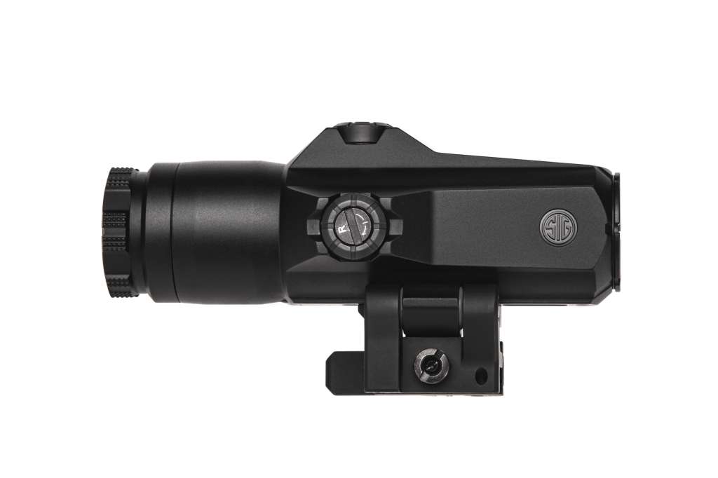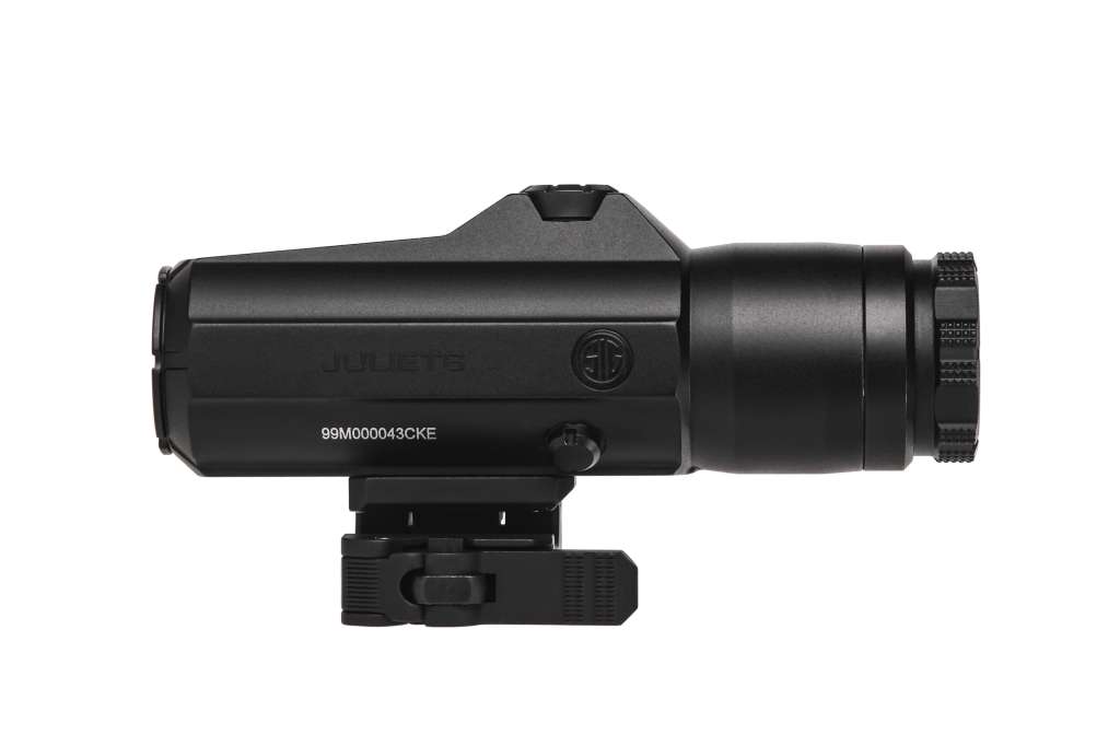 Блискавичний перехід від ближнього бою до середніх дистанцій. SIG Optics JULIET 6 MAGNIFIER, 6X24MM, POWERCAM QR MOUNT сконструйований для роботи як самостійно, так і в поєднанні з коліматорними прицілами. При використанні з коліматорами висота може бути відрегульована за допомогою проставок, а швидкознімне кріплення гарантує повторюваність при знятті-установці і стійкість до віддачі. PowerCam 90 ° Mount дозволяє моментально відкинути збільшувач для стрільби по близьких мішенях або ж одним рухом повернути отримавши додаткове 6х кратне збільшення.
