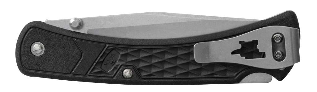 Новинка! Нарешті, легендарний Buck 110 можна з легкістю носити на кишені! Клнок виготовлений з тієї ж фірмової сталі, що і повноцінний побратим, а ось рукоять істотно втратила в обсязі, вазі і отримала дуже зручну двохпозиційну кліпсу. Бонусом є можливість відкриття однією рукою (правою лівою) за допомогою шпенька.