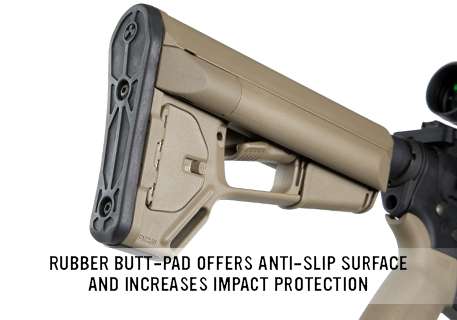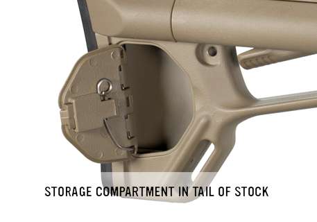 Magpul ACS (Adaptable Carbine / Storage) - телескопічний приклад для карабінів створених на основі AR15 / M4. ПІДХОДИТЬ ТІЛЬКИ ДЛЯ ТРУБ СТАНДАРТУ Commercial-Spec. Приклад оснащений двома водонепроникними відділеннями для зберігання батарейок та відділенням для зберігання малих деталей. Обтічний дизайн прикладу вкрай зручний для миттєвого «вкладки» і надійно захищає важіль складання від ненавмисного натискання. Надійна система фіксації не дозволяє прикладу коливатися і забезпечує стабільність зброї під час стрільби, на прикладі є місце для установки швидкознімної антабки QD, як з правого, так і з лівого боку. Стандартний потиличник товщиною 7,6 мм дозволяє легко оперувати зброєю і уникати зачепів навіть в бронежилеті або повному військовому спорядження. Особливості: - Два водонепроникних відсіку для батарейок розташовані по обидва боки прикладу, закриватися щільними гумовими заглушками, які можна зняти без використання інструментів (кожне відділення вміщує 3 батарейки CR123A lithium або 2 AA) - Легкодоступний відсік для зберігання батарейок то що розташований в задній частині прикладу - Спеціальний механізм фіксує приклад на трубці та мінімізує його коливання, збільшуючи точність швидкої серії пострілів і прицільної стрільби на далекі відстані - Похила щока не збільшує габарити зброї та дозволяє вести стрілянину з максимальним комфортом - Пружина, яка фіксує приклад зроблена з хромо-кремністой сталі, що значно подовжує термін служби пристрою - Є кріплення для установки щоки, що регулюється - Є місце для установки швидкознімних антабок типу QD (зліва чи справа), кріплення для звичайних ременів шириною 1,25 дюйма (32 мм), отвір для паракордового шнура.