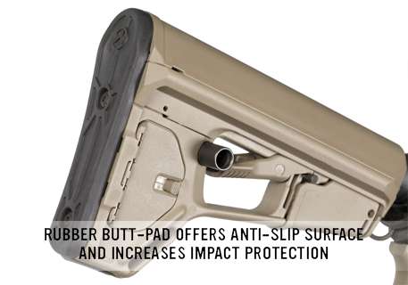 Magpul ACS-L (Adaptable Carbine Stock - Light) - телескопічний приклад для карабінів створених на основі AR15 / M4. ПІДХОДИТЬ ТІЛЬКИ ДЛЯ ТРУБОК СТАНДАРТУ Commercial-Spec. Більш легка версія прикладу ACS - відсутні відсіки для батарейок. Обтічний дизайн прикладу вкрай зручний для миттєвої «вкладки» і надійно захищає важіль складання від ненавмисного натискання. Надійна система фіксації не дозволяє прикладу коливатися і забезпечує стабільність зброї під час стрільби, на прикладі є місце для установки швидкознімної антабки QD, як з правого, так і з лівого боку. Стандартний потиличник товщиною 7,6 мм дозволяє легко оперувати зброєю та уникати зачепів навіть в бронежилеті або повному військовому спорядження. Особливості: - Легкодоступний відсік для зберігання різного дріб'язку розташований в задній частині прикладу - Спеціальний механізм фіксує приклад на трубці та мінімізує його коливання, збільшуючи точність швидкої серії пострілів і прицільної стрільби на далекі відстані - Похила щока не збільшує габарити зброї та дозволяє вести стрілянину з максимальним комфортом - Пружина, яка фіксує приклад зроблена з хромо-кремністой сталі, що значно подовжує термін служби пристрою - Є кріплення для установки щоки, що регулюється - Є місце для установки швидкознімних антабок типу QD (зліва чи справа), кріплення для звичайних ременів шириною 1,25 дюйма (32 мм), отвір для паракордового шнура.