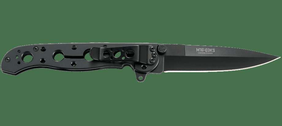 Головним акцентом CRKT "M16-03KS" є його гострий клинок типу "Spear Point", що дозволяє виконувати різноманітні завдання з високою точністю і легкістю. Клинок виготовлений з високоякісної сталі, що забезпечує йому надзвичайну міцність і довговічність. Він також має чорне покриття, яке забезпечує стійкість до корозії і забруднень.
