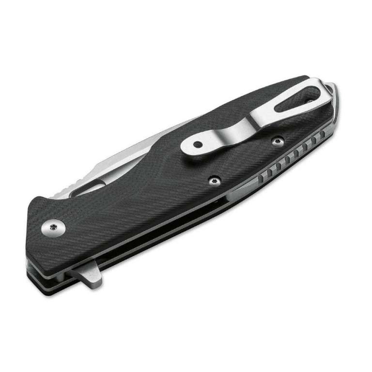 Boker Plus Caracal Folder - це сучасний і міцний універсальний ніж, який відрізняється не тільки чудовою міцністю, але і особливою ергономікою. Обкладки з G10 мають три рівні і розташовані на міцних проставках з нержавіючої сталі, а розташування канавок забезпечує чудову утримання навіть при зміні хвата. Клинок виготовлений зі сталі D2, має шліфовану поверхню і зібраний на шарикопідшипниках для ідеального використання з Флиппер. Затиск двосторонній (лівий / правий) і гарантує надійну посадку в кишені. Лайнер закінчується ударним елементом зі вбудованим отвором для шнурка, а його виступає скоба забезпечує додаткове зчеплення.