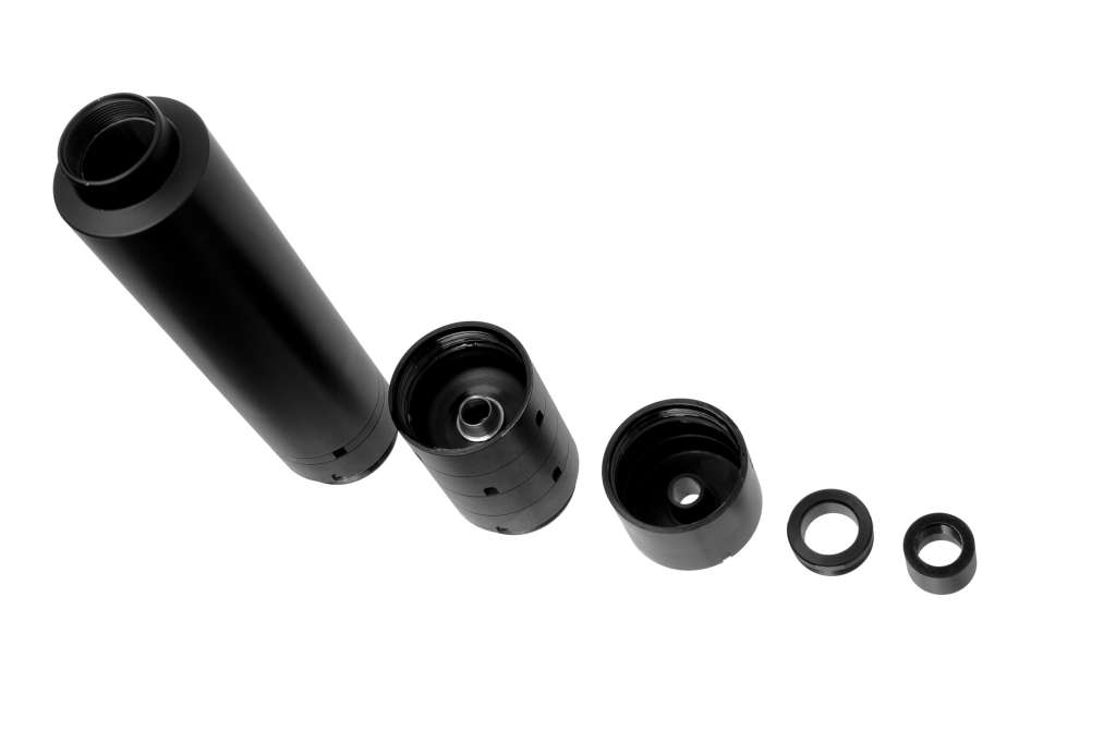 Для того, чтобы сделать его прочным и долговечным, насколько это возможно, в корпус саундмодератора установлен сердечник из нержавеющей стали, который гарантирует, что перемычки не будут повреждены при высоких температурах, которые возникают, при интенсивной стрельбе, даже короткими очередями из автоматического оружия.