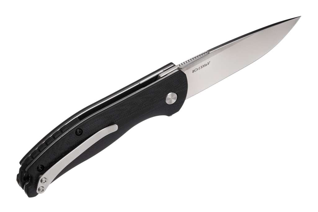 Клинок ножа – дроп пойнт із сталі 8Cr13MoV. Однією з найкращих нержавіючих сталей китайського виробництва, за своїми характеристиками, близька до японської AUS-8. Ця сталь має оптимальне поєднання ріжучих, міцнісних і протикорозійних.