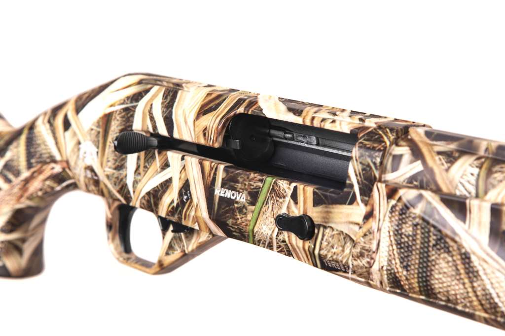 Рушниця Renova - це інерційний напівавтомат від турецького бренду Huglu. Конструкція рушниці Renova схожа на відомі інерційні італійські рушниці Benelli, які встигли добре себе зарекомендувати. Але модель Renova має також і рядом оригінальних технічних рішень. Корпус ударно-спускового механізму і запобіжна скоба металеві, і передбачають більшу надійність. Модифікована затворна група забезпечує впевнену роботу з різними спортивними і мисливськими патронами з навісками від 24 г до 50 г, не обмежуючи стрілка у виборі боєприпасів. Стволи цих рушниць виробляються з італійської сталі. Стволи, патронники і канали стволів хромовані і виготовлені методом глибокого свердління за технологією Ex-Bore і Slight Force з подовженим перехідним конусом і діаметром циліндричної частини ствола 18,75 мм. У комплект також входять п'ять змінних дульним насадок (чоків) довжиною 70 мм, зроблених за новою технологією Active Choke, що значно розширює можливості використання рушниці. Наявність в комплекті проставок дозволяє регулювати відвід прикладу і додає зручності у використанні. Фірмовий потиличник-амортизатор реперзентує технологію Soft Impact. Він помітно гасить віддачу і не чіпляється за одяг стрілка при стрільбі навскидку, таким чином, позитивно впливає на комфорт, швидкість і точність пострілу. Добрий баланс, невелика вага, якісна обробка і при цьому доступна ціна роблять рушницю Renova марки Huglu привабливим інструментом стрілка і мисливця.